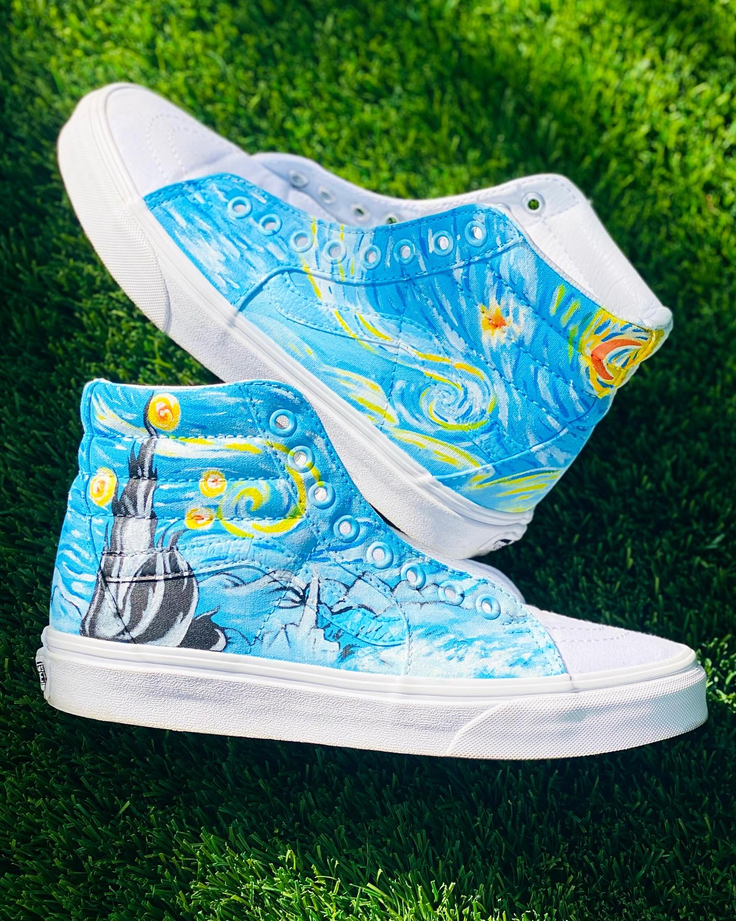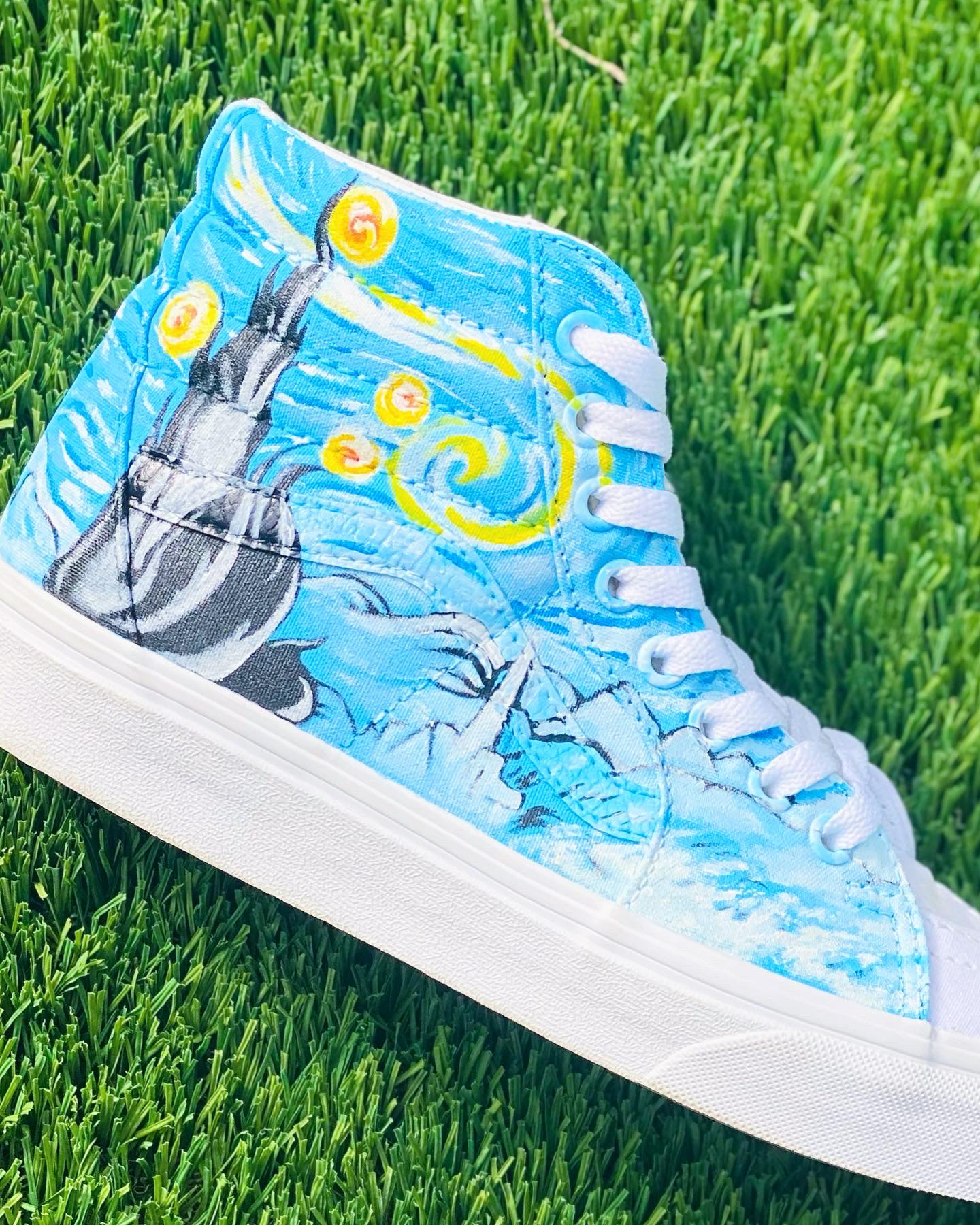 In my custom sneaker work, I blend creativity with craftsmanship to transform ordinary shoes into unique wearable art. I turn sneakers into a canvas, pushing boundaries with bold, one-of-a-kind designs. Each pair is hand-painted to create fresh, street-ready looks that bring personality and style to every step. I focus on personalizing each shoe, from wild graphics to intricate details, I blend urban flair with custom artistry, crafting kicks that not only turn heads but reflect the unique vibe of the wearer. These custom kicks aren't just shoes...they're a statement.
